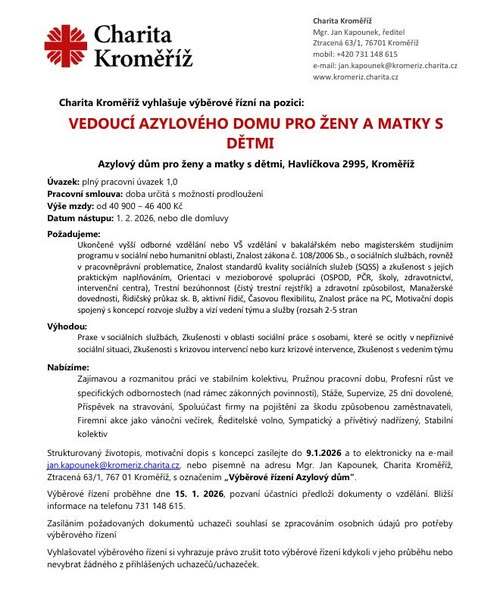 Vedoucí do Azylového domu pro ženy a matky s dětmi
